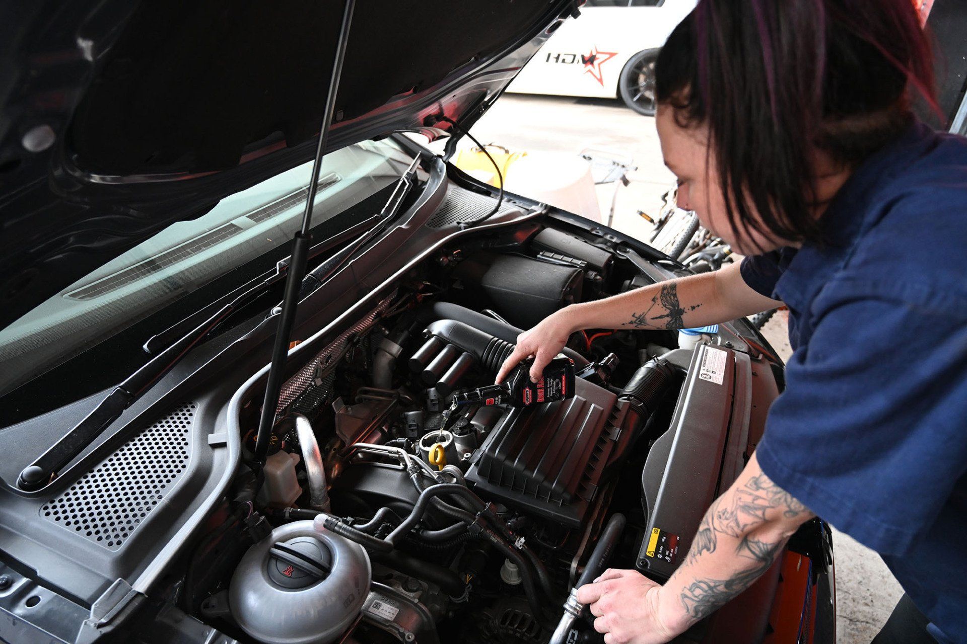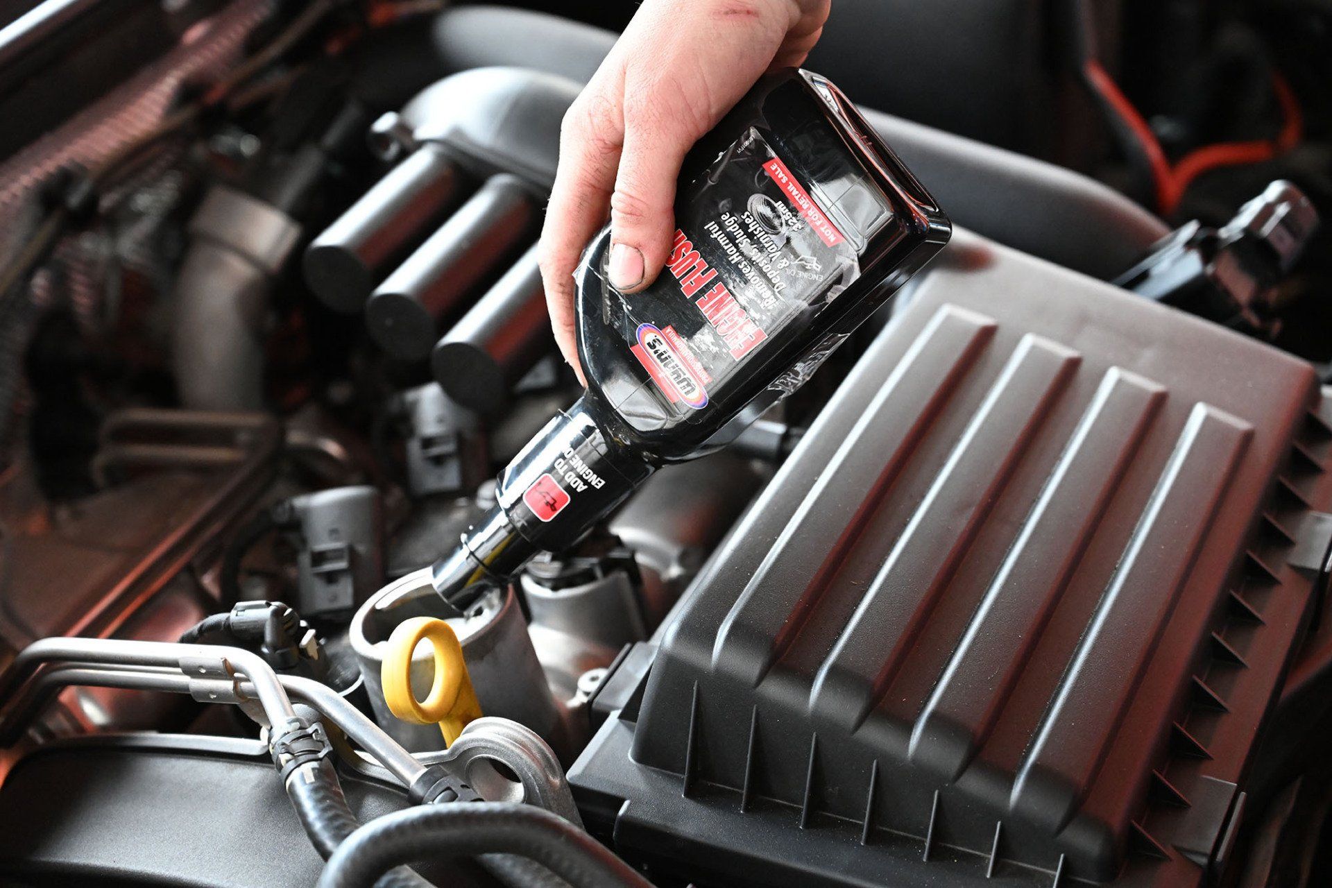 From there she moved to the engine bay and added a full bottle of ‘Engine Flush’.