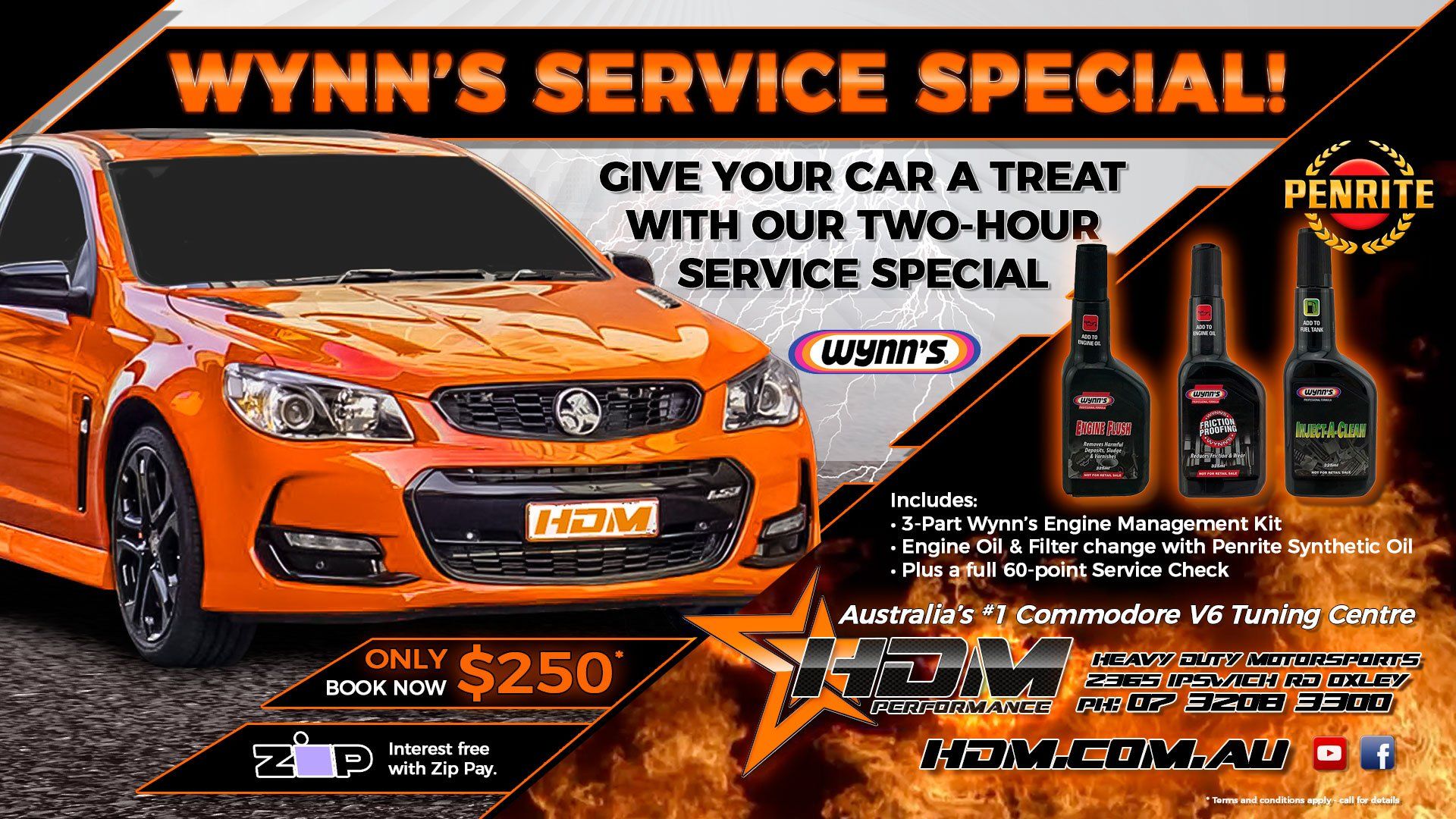 So, when HDM advertised a 2-hour Service Special that includes a 3-part Wynn’s Engine Management Kit, Penrite Oil, Filter and a 60-point safety check, I ran out of excuses.